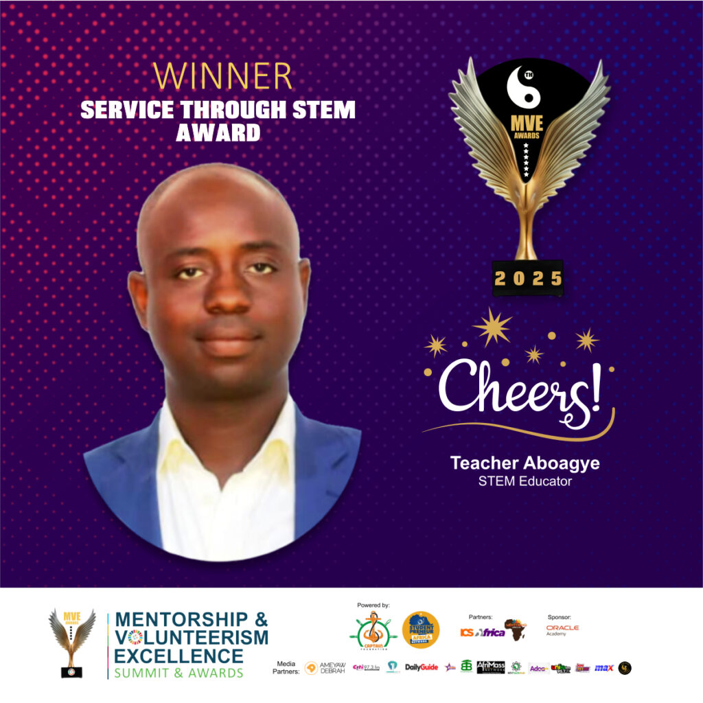 His influence helped position Worawora SHS as Ghana’s top-performing STEM school. Aboagye continues to empower students through creativity, problem-solving, and hands-on technology skills aligned with 21st-century STEM careers.