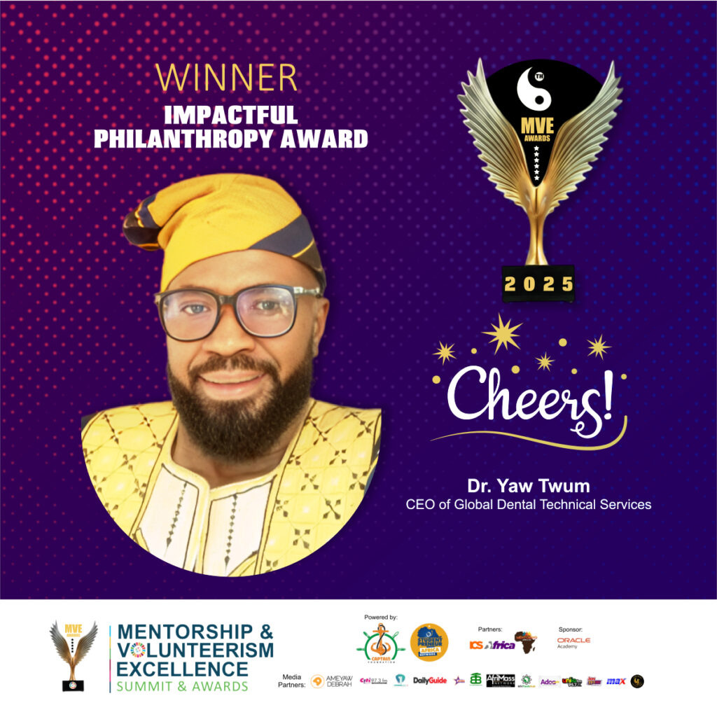 Dr. Yaw Twum is a leading dental technologist, health consultant, and humanitarian dedicated to improving oral health care in Ghana. Through Global Dental, he provides free dental screenings and community-focused oral health programs nationwide.