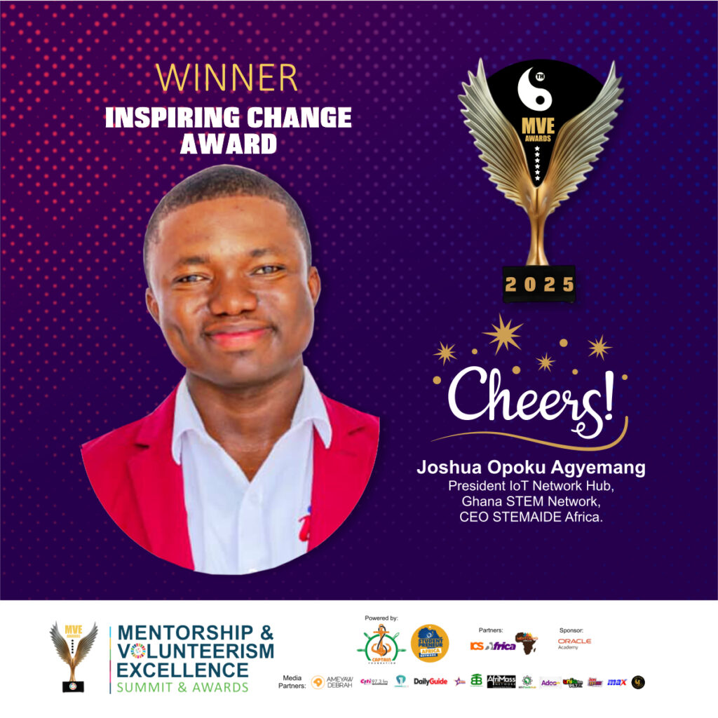 Joshua Opoku Agyemang—“The IoT Evangelist”—is a continental leader in technology innovation, STEM awareness, and AI-driven development. His work through Ghana STEM Network and IoT Network Hub has empowered thousands of young technologists.
