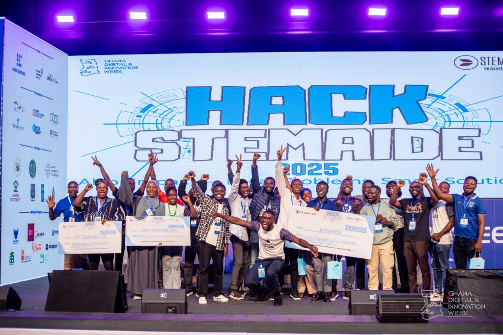 Accra, Ghana – In a landmark moment for Ghana’s digital future, STEMAIDE has successfully hosted its first-ever Hack STEMAIDE AI & STEM Hackathon on Thursday, 13th November, during the 2025 Ghana Digital Innovation Week (GDIW). Held at the Accra International Conference Centre, the event brought together more than 60 emerging innovators, forming 8 highly motivated teams, tasked with building real-world AI and robotics solutions powered by the STEMAIDE Learning Kit.